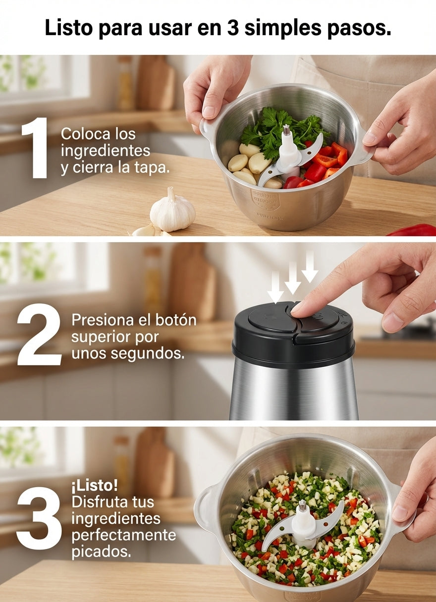 Con PowerChef™ puedes preparar desde frutas y verduras frescas, hasta carnes, frutos secos y bases para salsas. Un solo equipo para múltiples recetas en segundos.